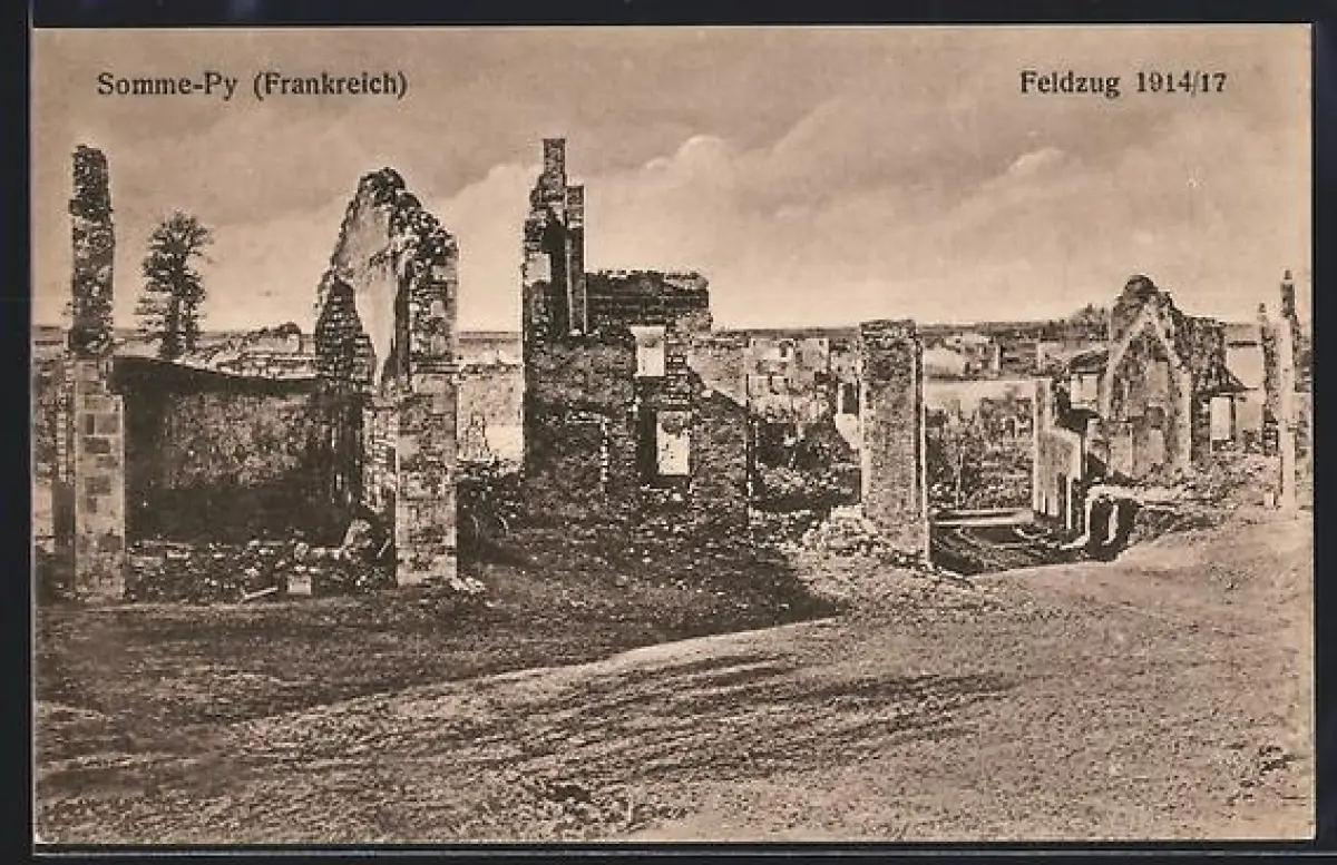 AK Somme-Py, Vue partielle de la ville détruite