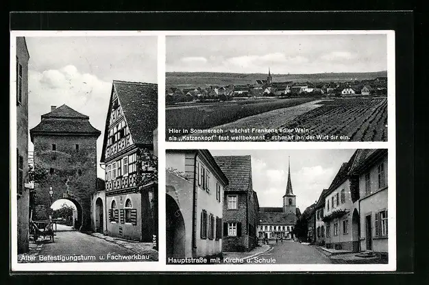 AK Sommerach /Main, Ortsansicht, Alter Befestigungsturm, Hauptstrasse