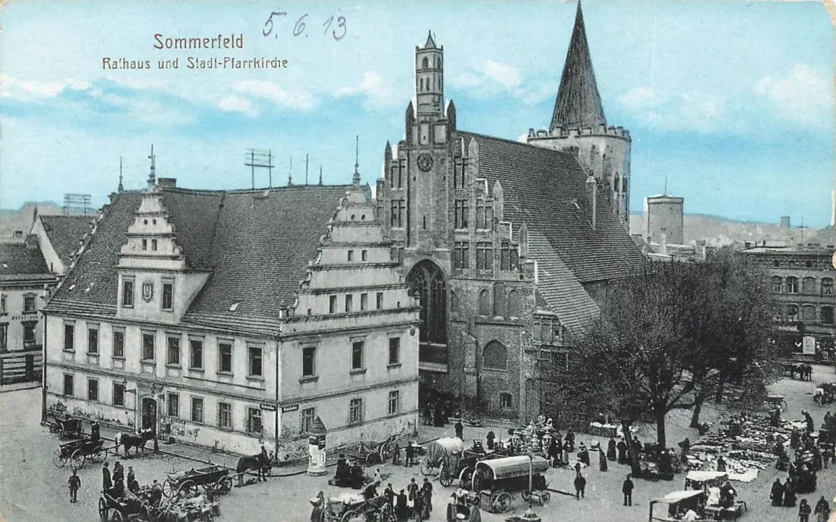 AK Sommerfeld Rathaus Stadt-Pfarrkirche Ostbrandenburg 1913 ungelaufen Postkarte