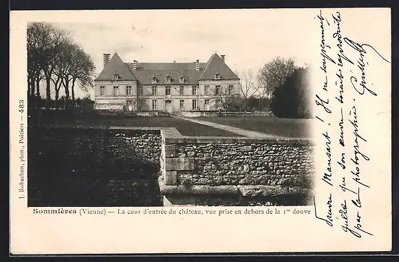 AK Sommières /Vienne, La cour d`entrée du château, Vue prise en dehors de la Ire douve