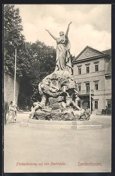 AK Sondershausen / Thüringen, Fürstenbrunnen auf dem Marktplatz