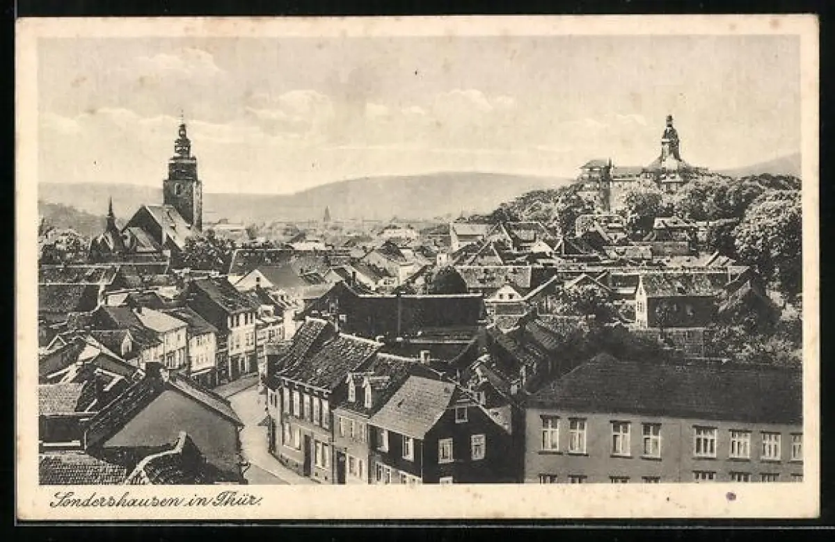 AK Sondershausen in Thür., Stadtansicht mit Kirche und Schloss
