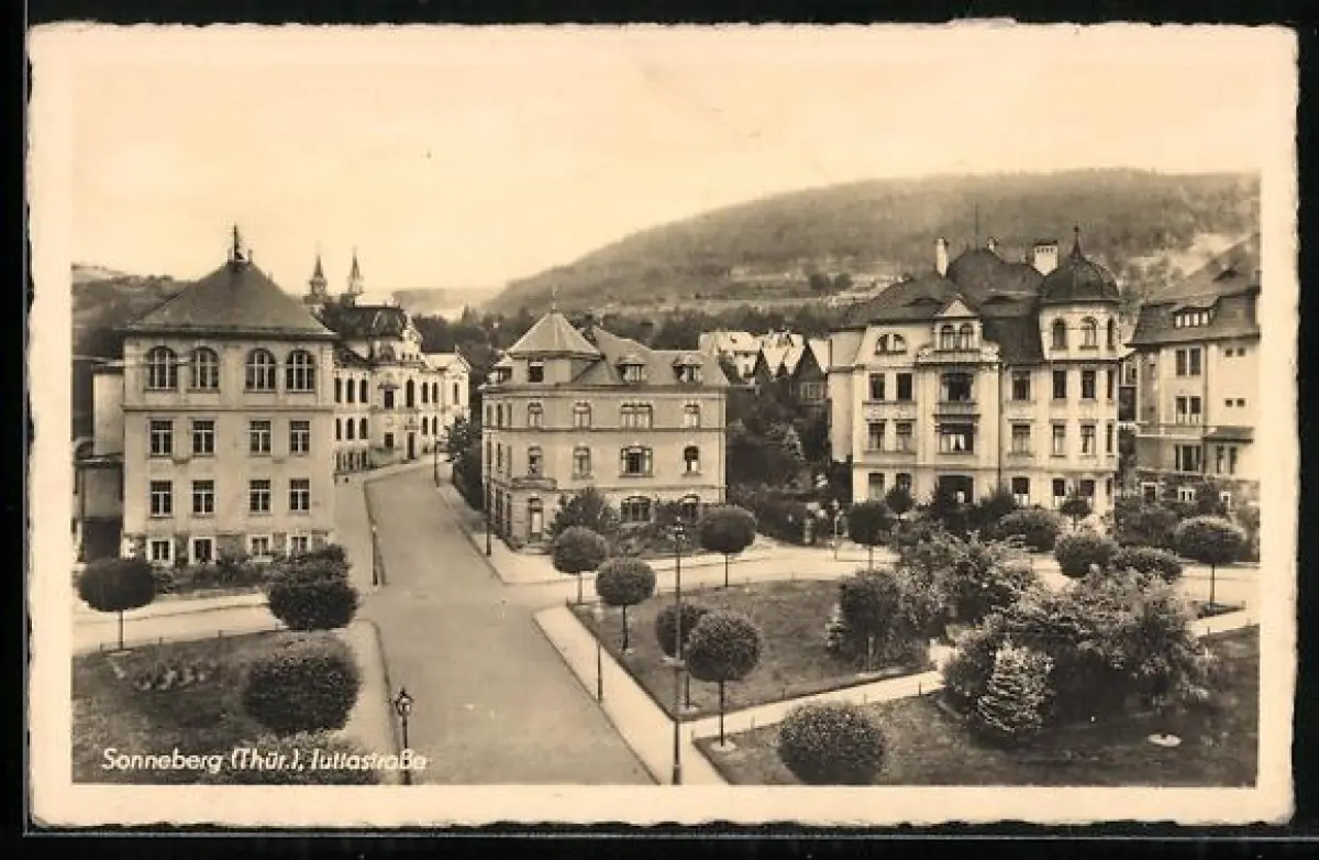 AK Sonneberg /Thür., Iuttastrasse mit Grünanlage