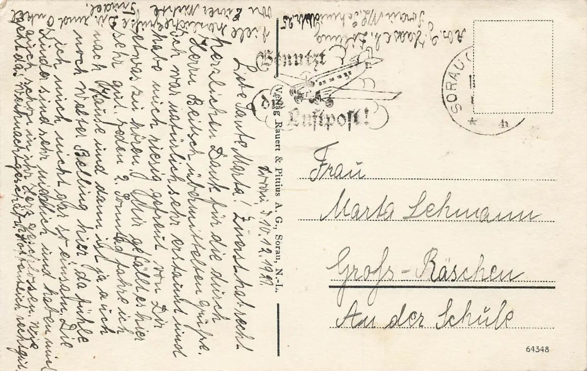 AK Sorau N.-L Schmidtstraße Ecke Priebuserstraße Polen 1929 gelaufen Postkarte