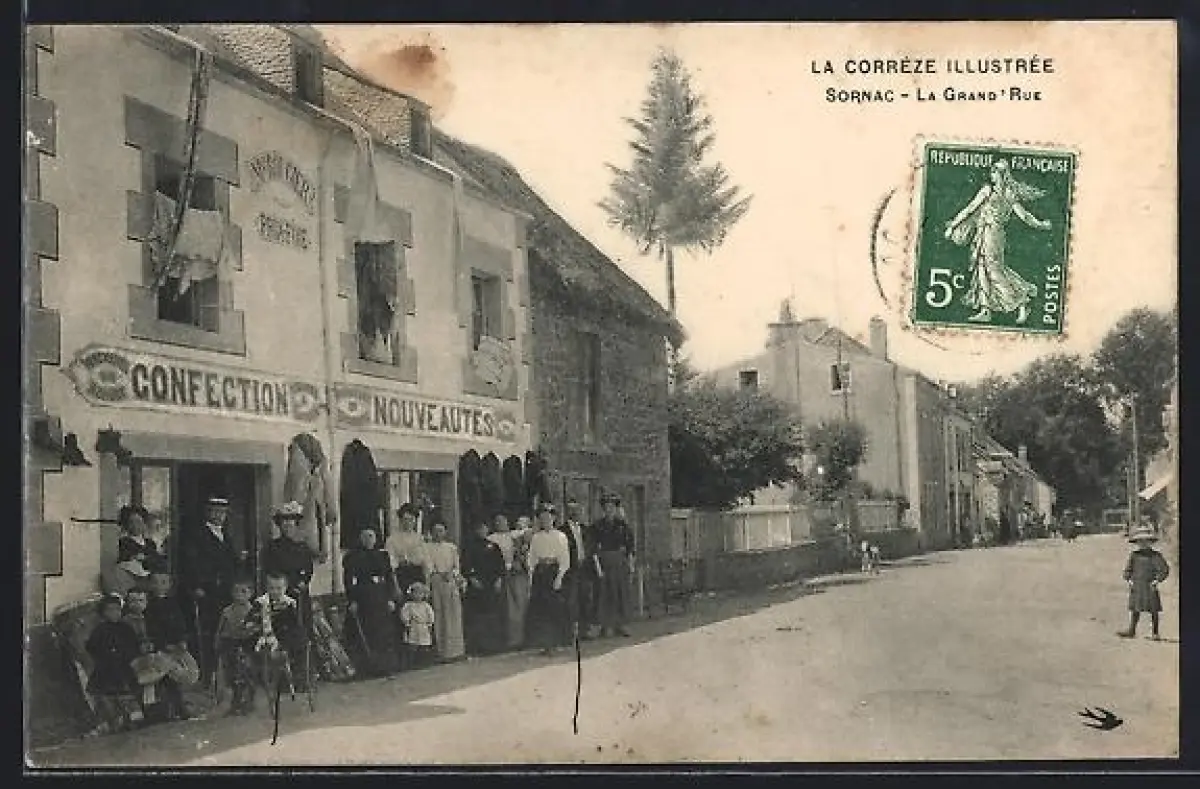 AK Sornac /Corrèze, La Grande Rue animée avec boutique de confection et nouveautés