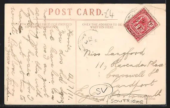 gelaufen 1911, Eckknick li. oben, Bugspur li. oben, guter Zustand