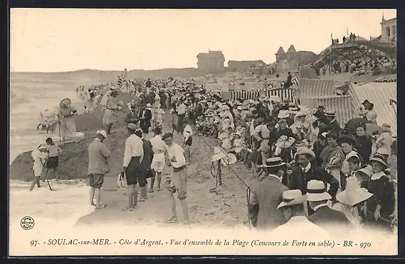 AK Soulac-sur-Mer, Vue d`ensemble de la Plage (Concours de Forts en sable)
