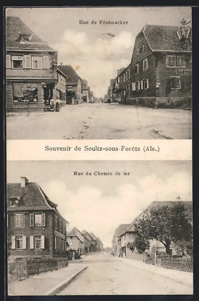 AK Soultz-sous-Forêts /Als., Rue de Frohnacker et Rue du Chemin de fer