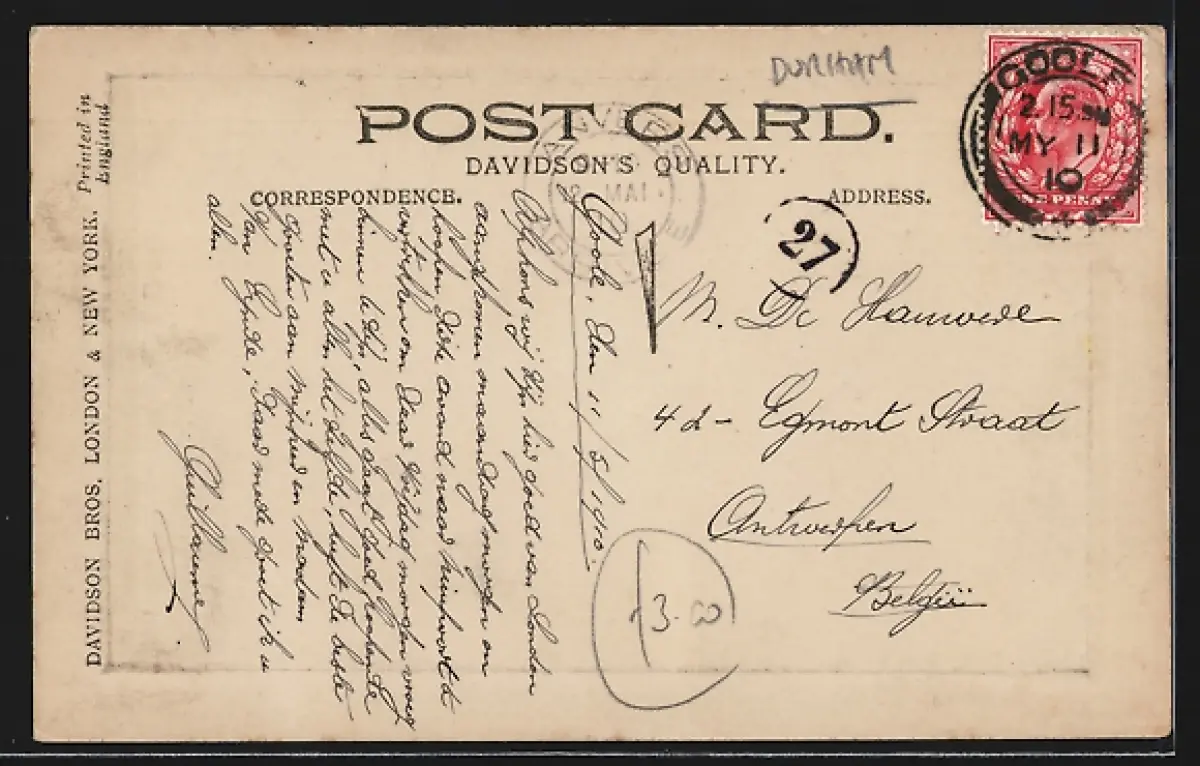 gelaufen 1910, Eckknick links oben, guter Zustand