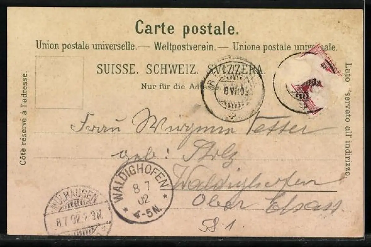 gelaufen 1902, Briefmarke entfernt, guter Zustand