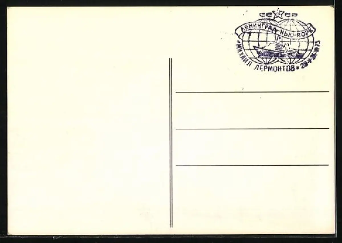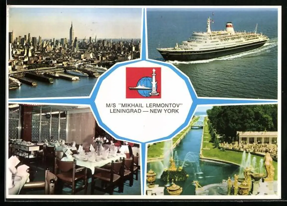 AK Sowjetisches Motorschiff Mikhail Lermontov der Linie Leningrad-New York, Passagierschiff