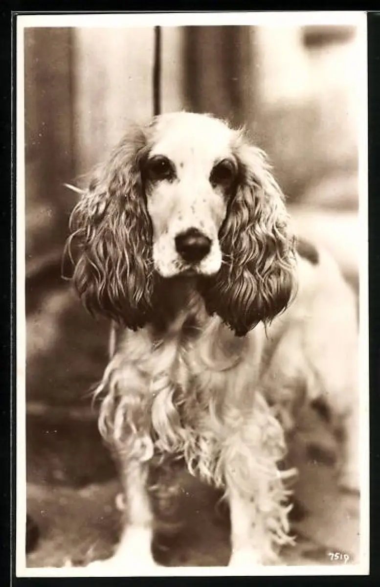 AK Spaniel mit hellem Fell und dunklen Ohren, Portrait