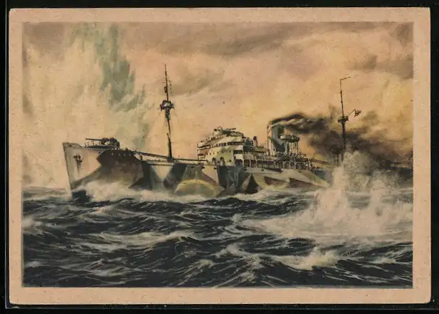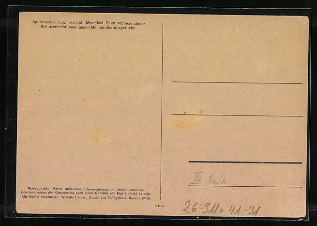 AK Sperrbrecher durchbricht Minenfeld, Er ist mit Schutzeinrichtungen gegen Minentreffer ausgerüstet, Kriegsmarine
