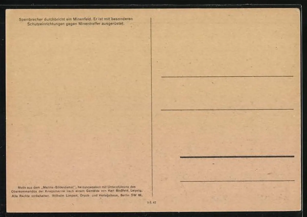 AK Sperrbrecher durchbricht ein Minenfeld, Er ist mit besonderen Schutzeinrichtungen gegen Minentreffer ausgerüstet, Kri