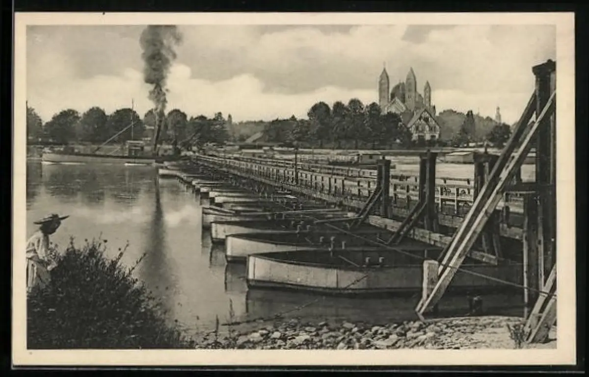 AK Speyer a. Rh., Schiffsbrücke, Dom