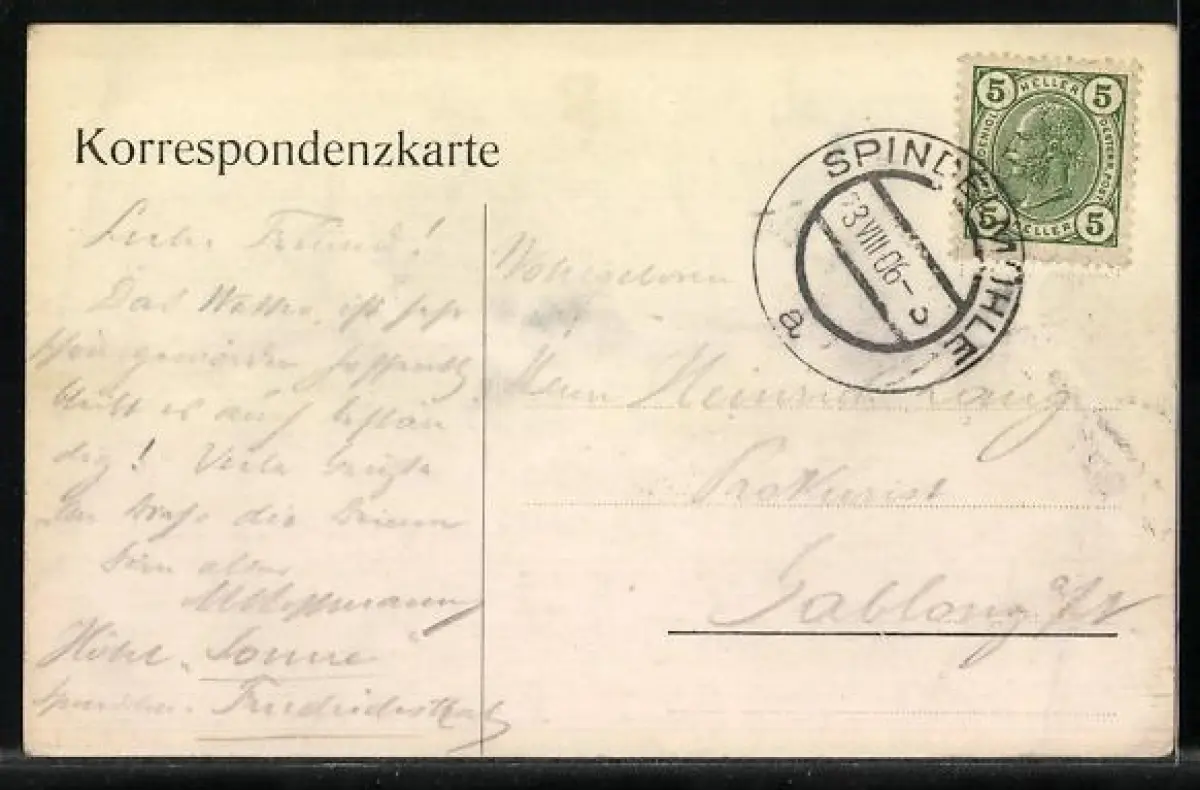 alte Ansichtskarte, gelaufen 1906, Bugspur li. unten, guter Zustand