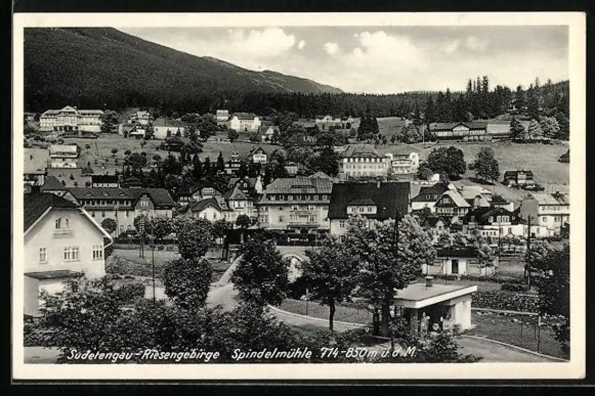 AK Spindelmühle /Riesengebirge, Panorama mit Strassenpartie