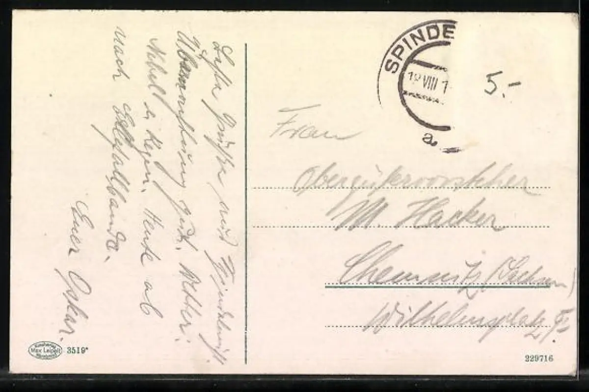 alte Ansichtskarte, gelaufen, Briefmarke entfernt, rückseitig Oberflächenschaden, Eckknick li. oben, guter Zustand