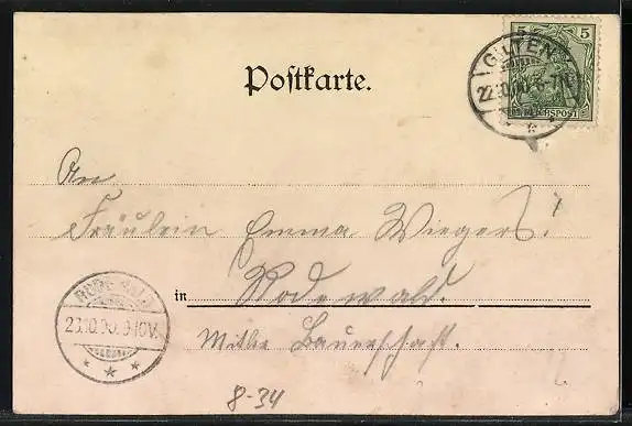 alte Ansichtskarte, gelaufen 1900, guter Zustand