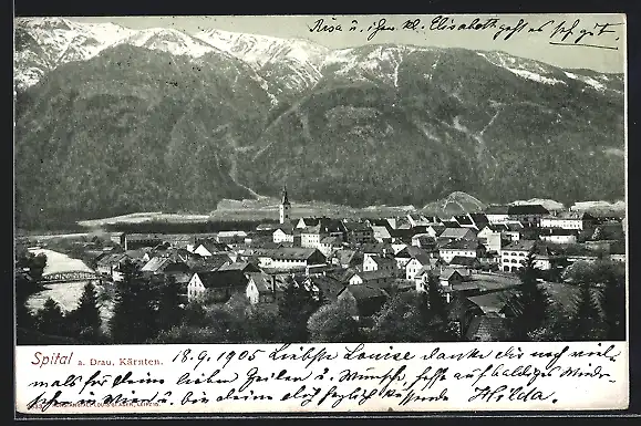 AK Spital a. Drau, Ortsansicht mit Bergpanorama