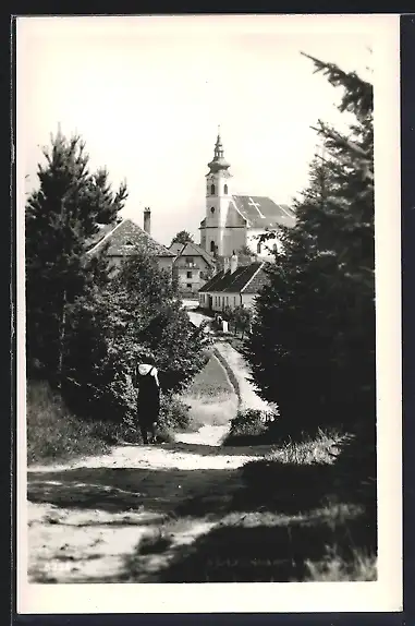 AK Spital a. Pyhrn, Blick auf die St. Leonhard-Kirche mit Strassenpartie