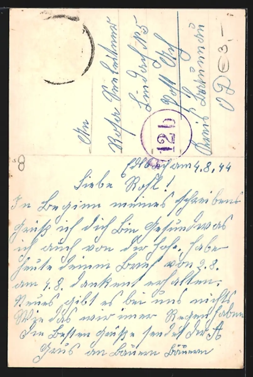 alte Ansichtskarte, gelaufen 1944, Briefmarke entfernt, guter Zustand