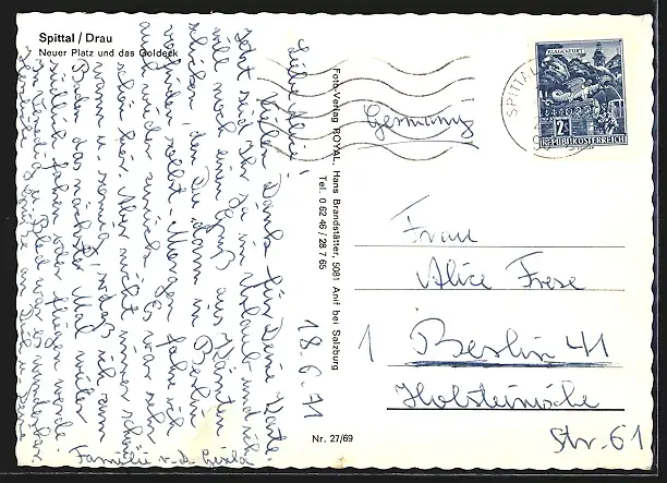 AK Spittal /Drau, Neuer Platz und das Goldeck