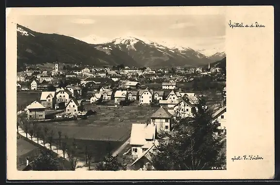 AK Spittal a. d. Drau, Stadtansicht vor schneebedeckten Bergen
