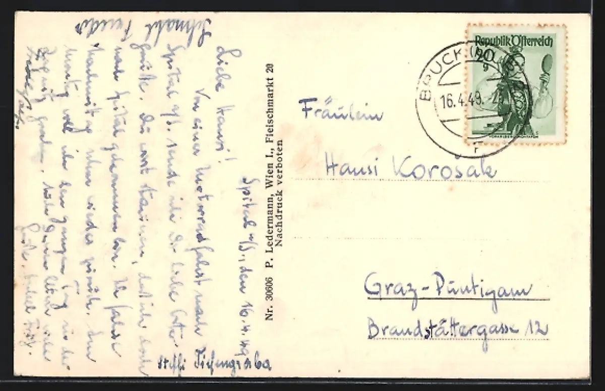 alte Ansichtskarte, gelaufen 1949, guter Zustand