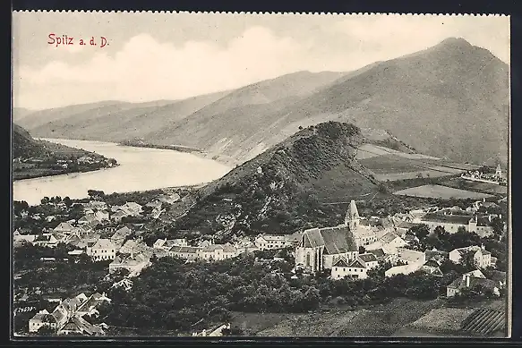 AK Spitz a. d. Donau, Panorama aus der Vogelschau