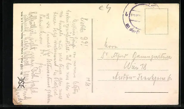 alte Ansichtskarte, gelaufen, Briefmarke entfernt, Eckknick unten li., Eckschaden unten re., guter Zustand