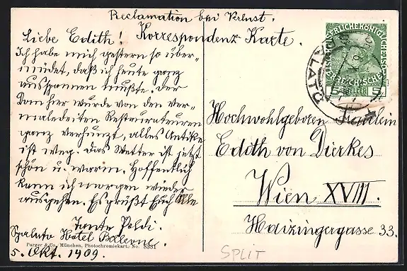 alte Ansichtskarte, gelaufen 1909, guter Zustand
