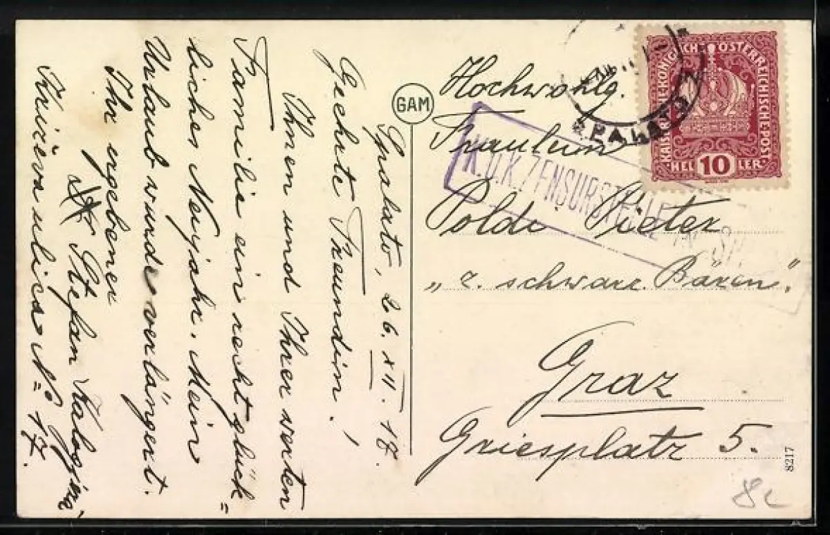 alte Ansichtskarte, gelaufen 1917, Stempelspur, guter Zustand