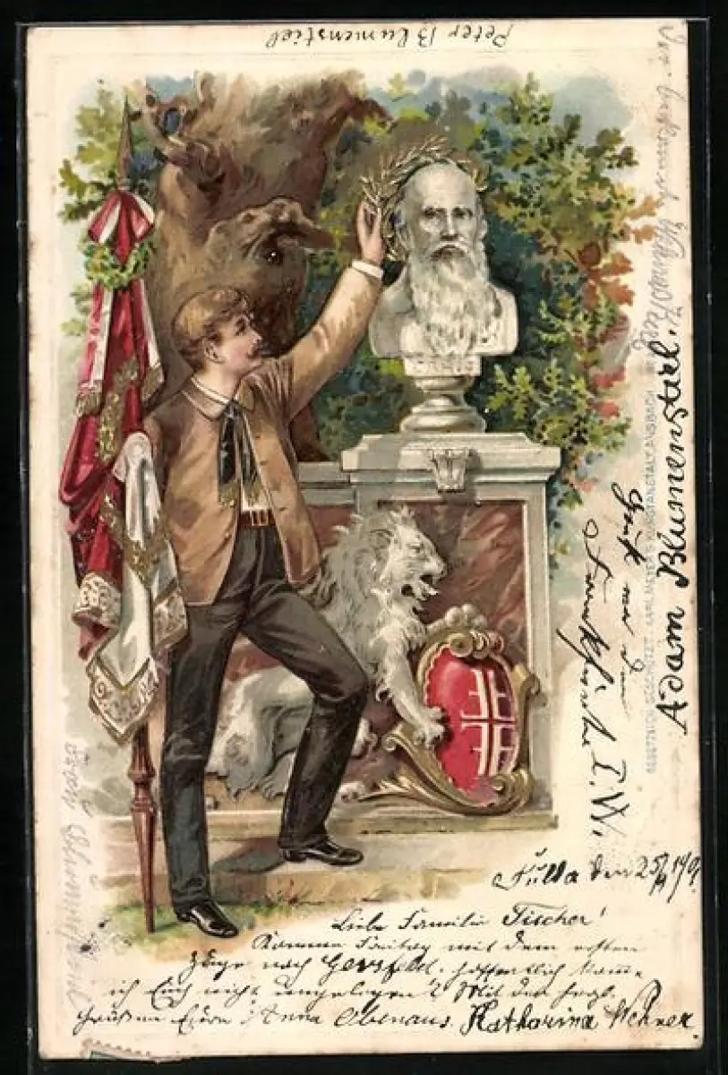 AK Sportler setzt einen Kranz auf die Büste von Turnvater Jahn
