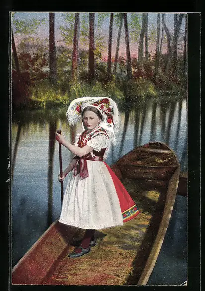 AK Spreewälderin in einem Kahn