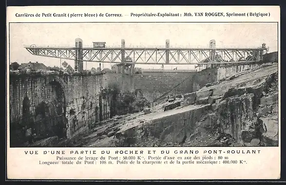 AK Sprimont, Carrières de Petit Granit de Correux, Vue d`une partie du rocher et du grand pont-roulant