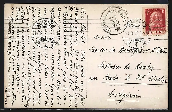 gelaufen 1912, Eckknick oben li. u. unten re., guter Zustand