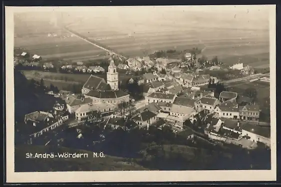 AK St. Andrä-Wördern /N. Ö., Gesamtansicht mit Landstrasse aus der Vogelschau