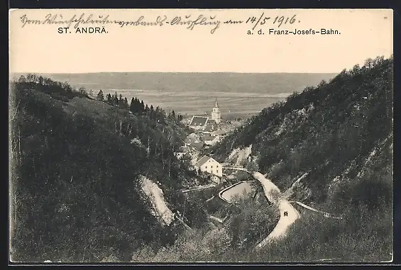 AK St. Andrä-Wördern, Ortsansicht a. d. Franz-Josefs-Bahn