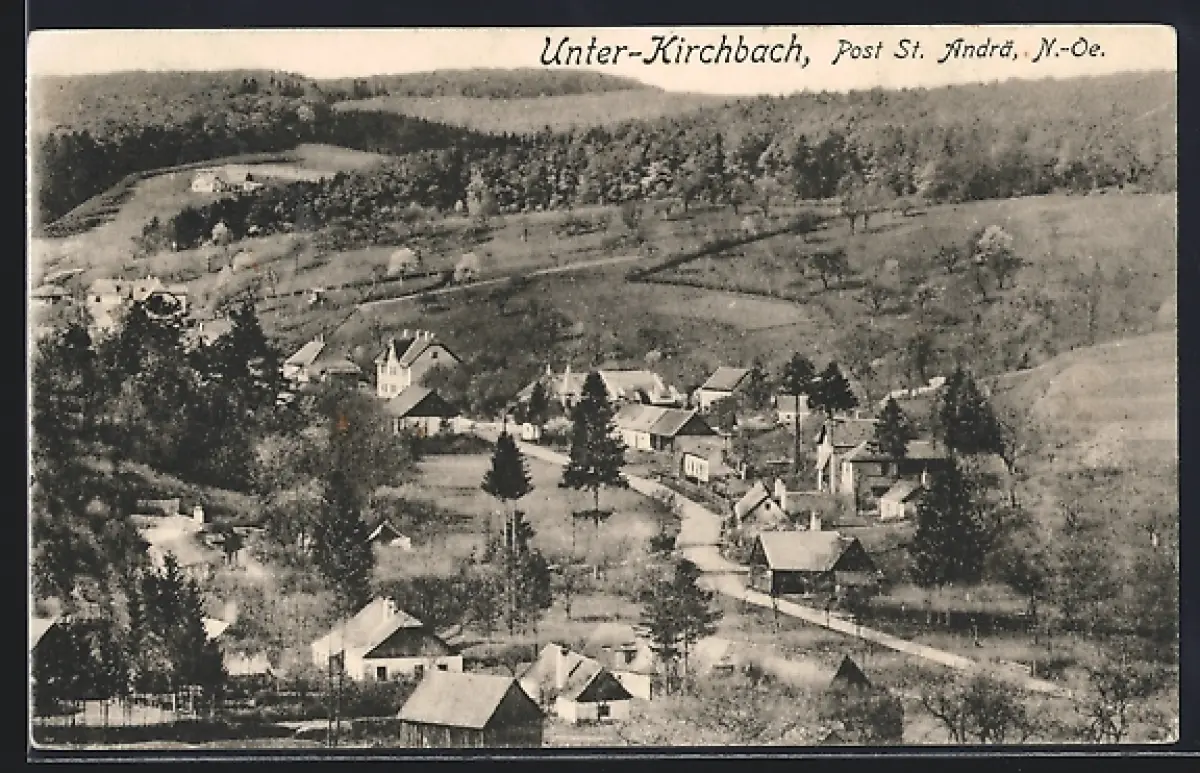 AK St. Andrä-Wördern, Unter Kirchbach bei St. Andrä, Ortsansicht aus der Vogelschau
