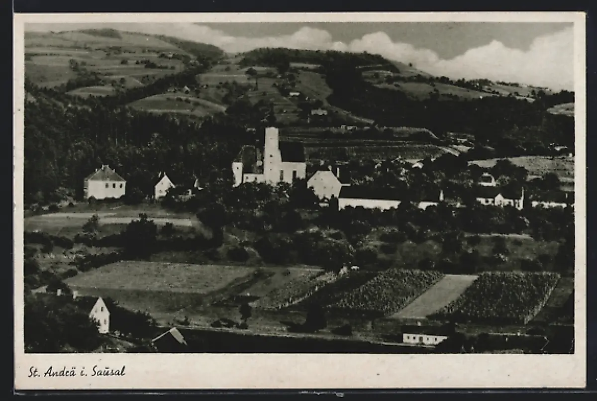 AK St. Andrä i. Sausal, Ortspartie mit Kirche