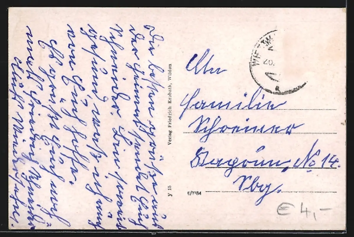 alte Ansichtskarte, gelaufen, Briefmarke entfernt, guter Zustand