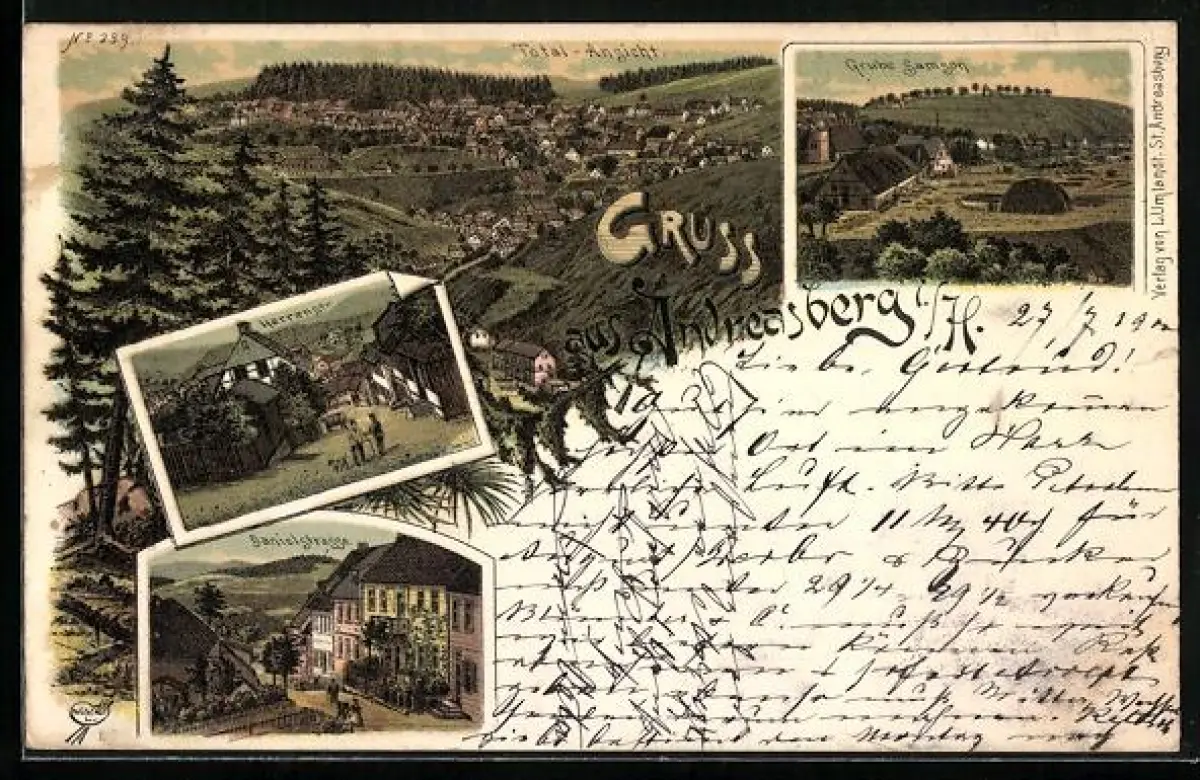 AK St. Andreasberg, Totalansicht, Grube Samson, Herrenstrasse und Danielstrasse