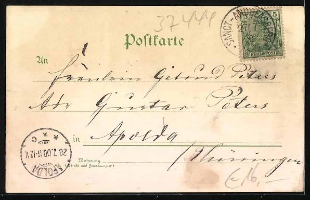 alte Ansichtskarte, gelaufen 1900, Einriss rechts mittig, guter Zustand