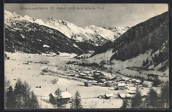 AK St. Anton a. Arlberg, Totalansicht vom Berg aus
