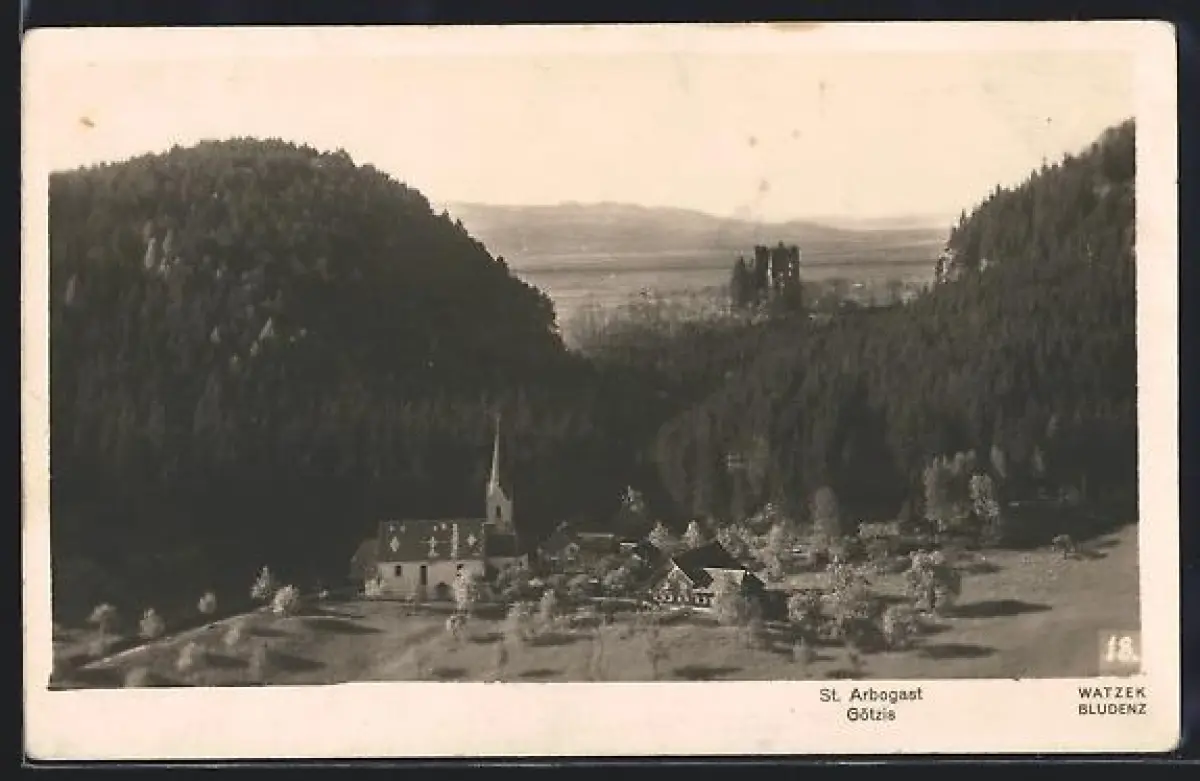 AK St. Arbogast, Götzis, Teilansicht mit Kirche