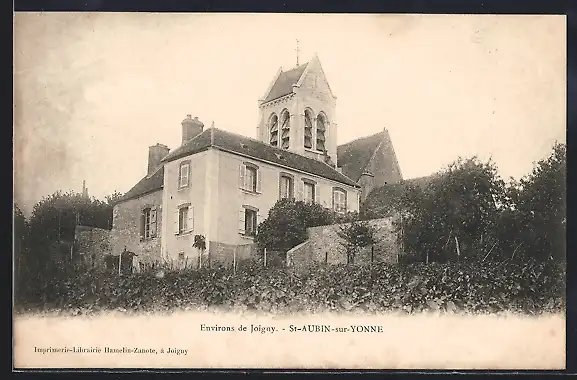 AK St-Aubin-sur-Yonne, Vue de l`église et des bâtiments environnants