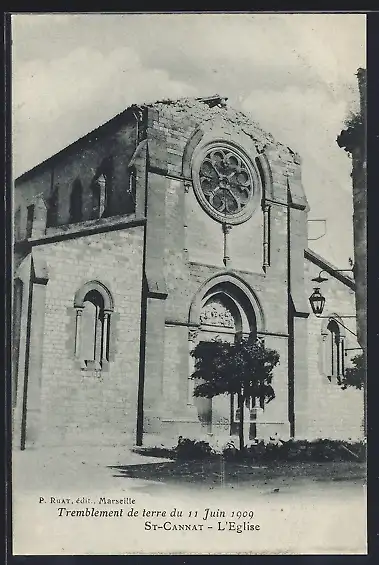 AK St-Cannat, Temblement de terre du 11 Juin 1909, L'Eglise