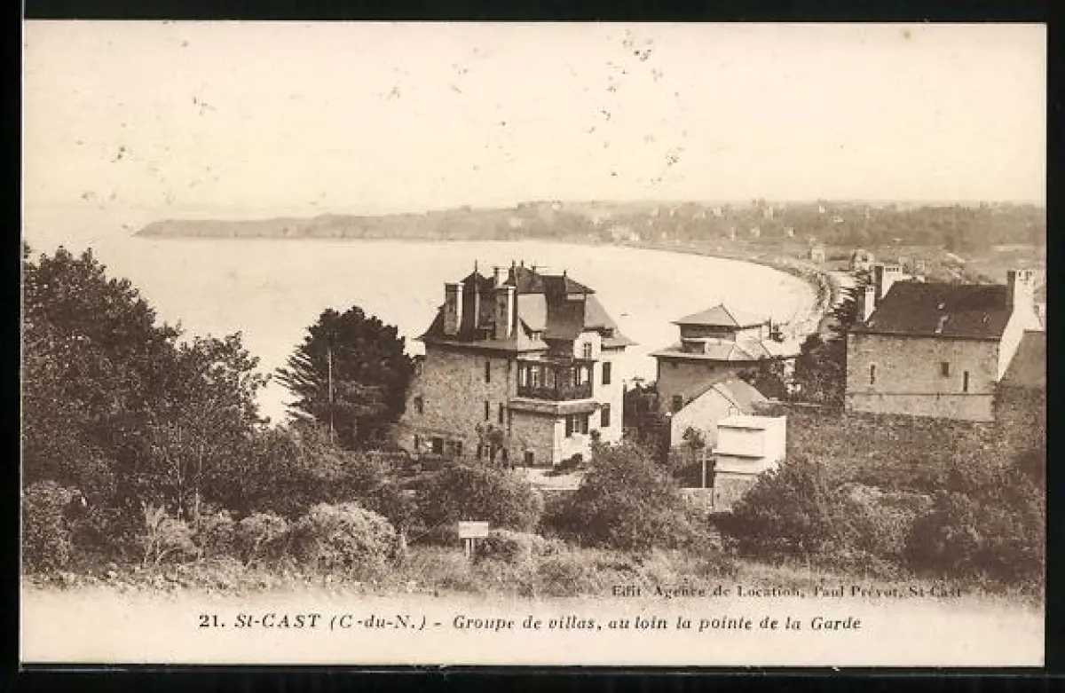 AK St-Cast /C.-du-N., Groupe de villas, au loin la pointe de la Garde