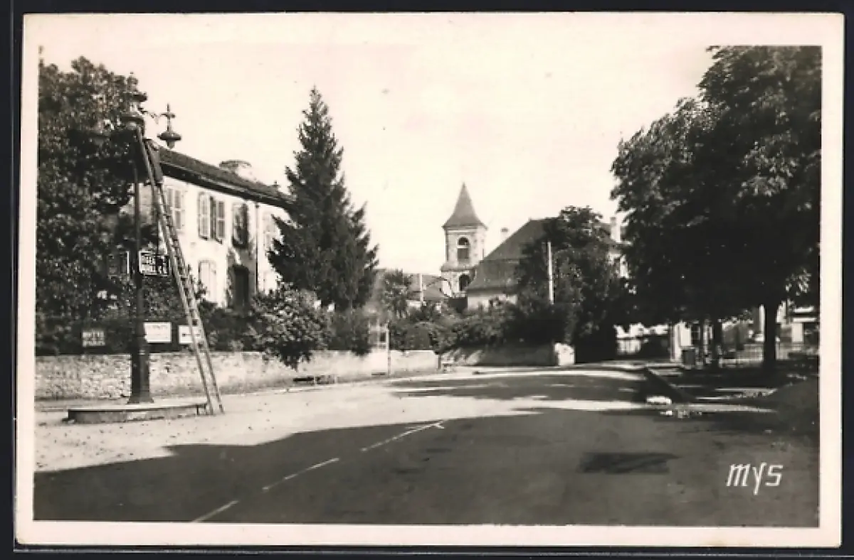 AK St-Céré /Lot, Place Bourseul avec vue sur l`église et les maisons environnantes